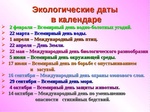 КАЛЕНДАРЬ ЭКОЛОГИЧЕСКИХ ДАТ И ПРАЗДНИКОВ